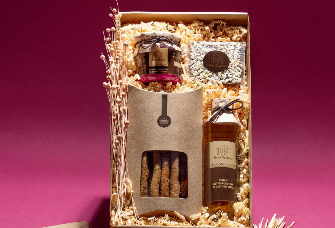 Dużą część strony zajmują zestawy i kosze prezentowe. W kompozycjach pojawiają się konfitury, miody, syropy, dżemy oraz wyroby mięsne w słoiku. W opisach pojawiają się też słodycze z polskich manufaktur. W tekście marki pada zdanie „Do serca drugiej osoby najłatwiej jest trafić przez żołądek”. Klient może dobrać kombinacje produktów i dołączyć bilecik z dedykacją lub logo firmy, a gotowe zestawy są pakowane i wysyłane w ozdobnej formie.